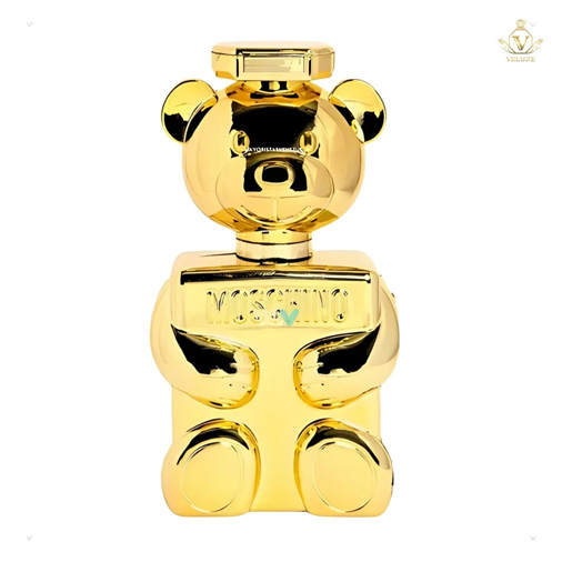 El frasco, con diseño en forma del icónico osito de Moschino en color dorado, refleja lujo, creatividad y estilo único.