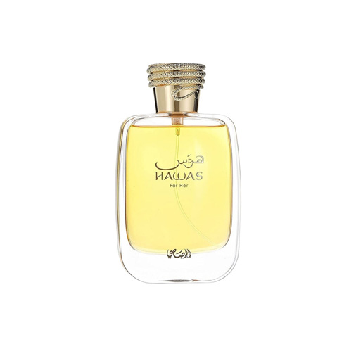 Hawas Her de Rasasi es una fragancia femenina moderna, sensual y vibrante, diseñada para quienes buscan un aroma distintivo, envolvente y atrevido. Su apertura combina notas frutales de pera, mandarina y frutos rojos, aportando un inicio brillante, fresco y atractivo.